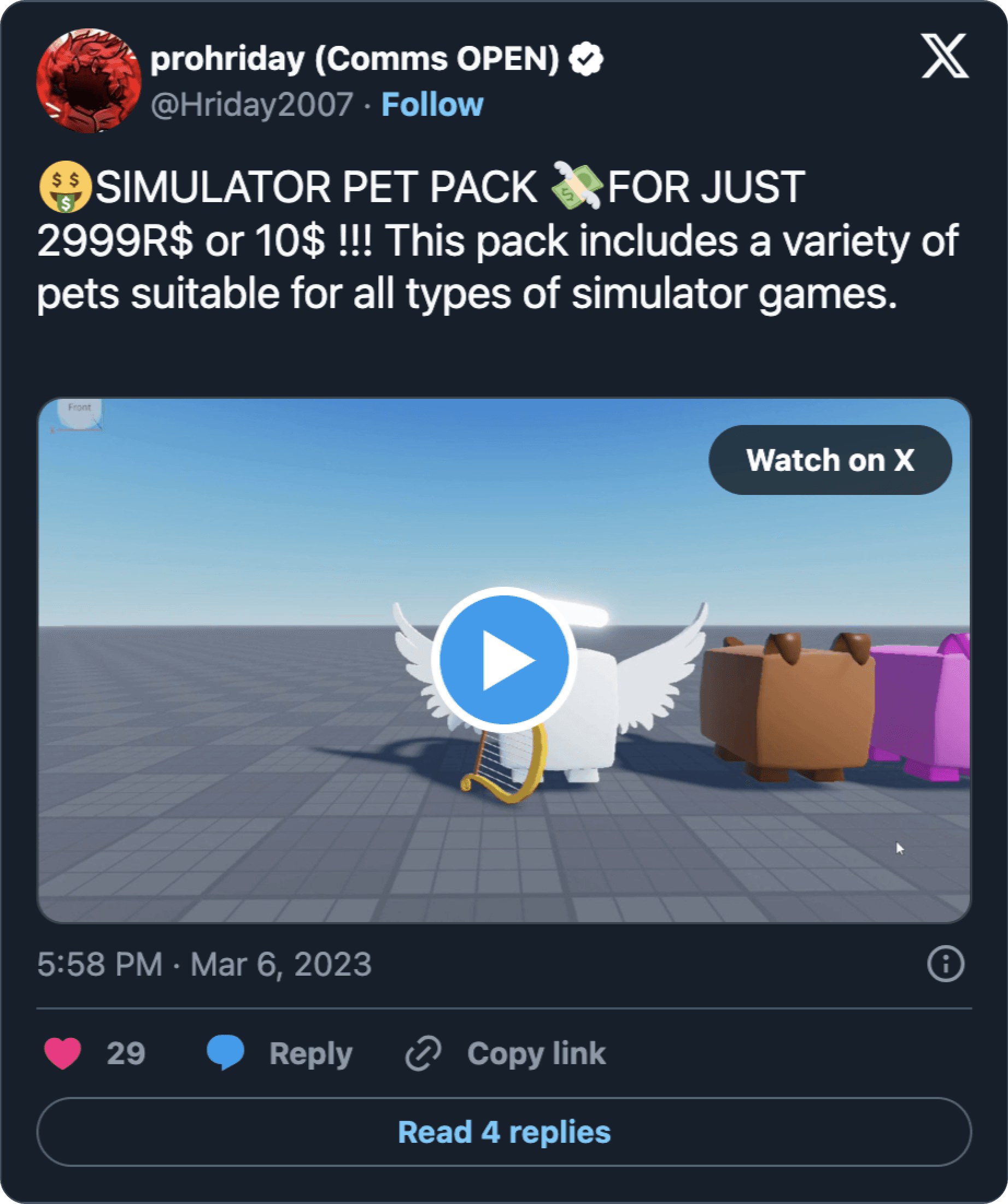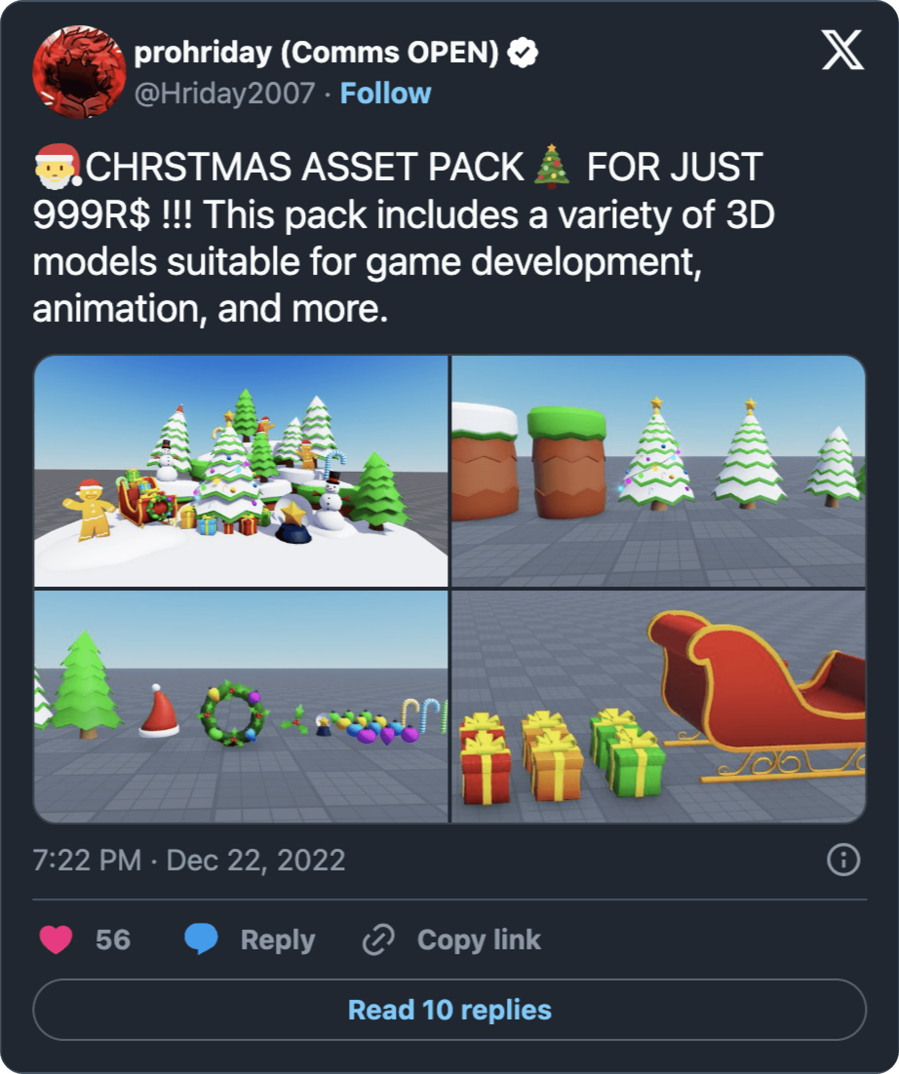 Created game-ready “3D models and graphics” contributed to popular ROBLOX games.
